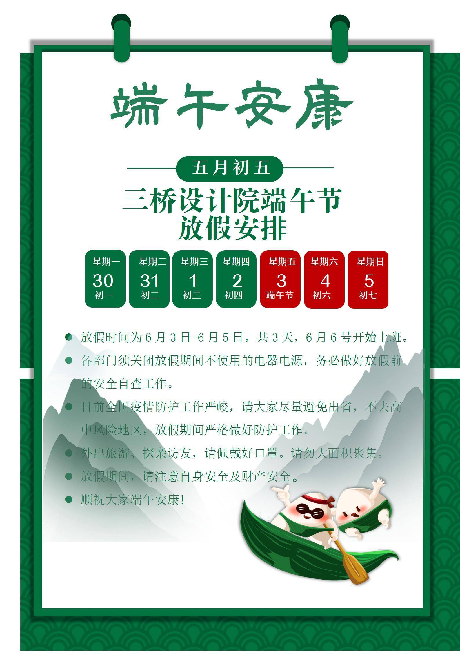 三桥设计端午放假安排通知