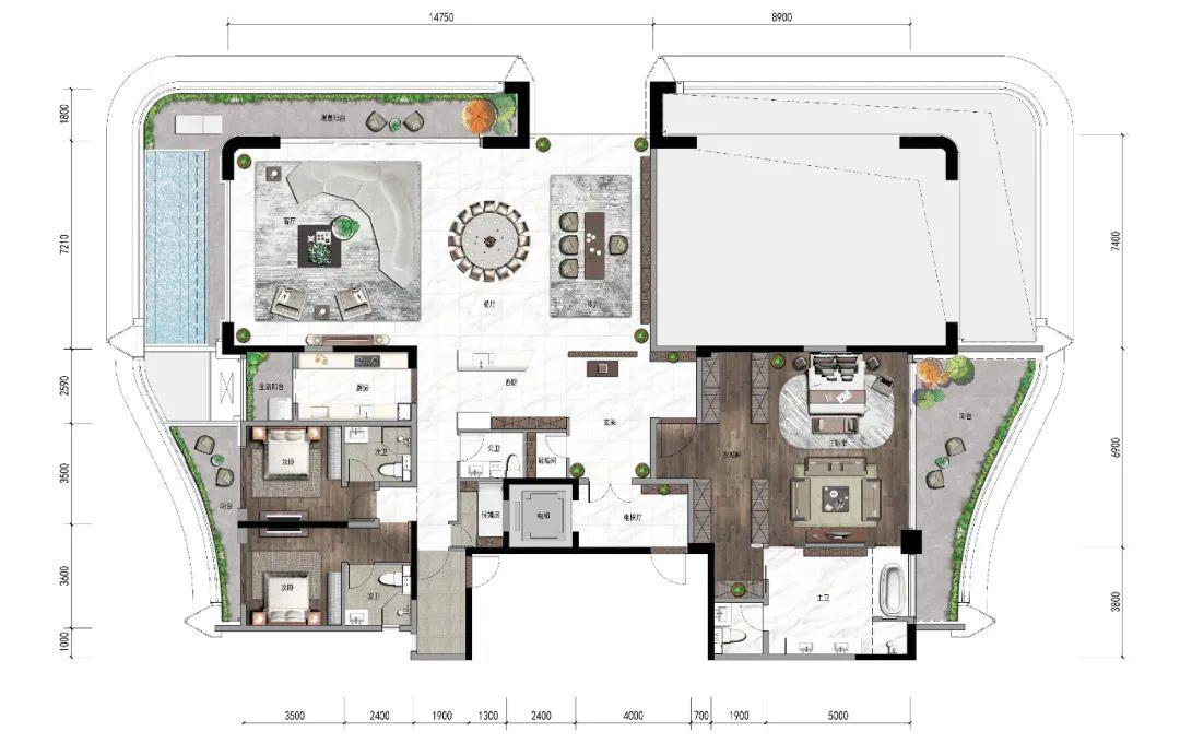 近年来,豪宅市场可谓“大平层”当道,将各大生活功能区铺展到一个平面上,让空间延续感得以指数级扩张,舒适感瞬间增加,备受高级买家们的认可与钟爱。